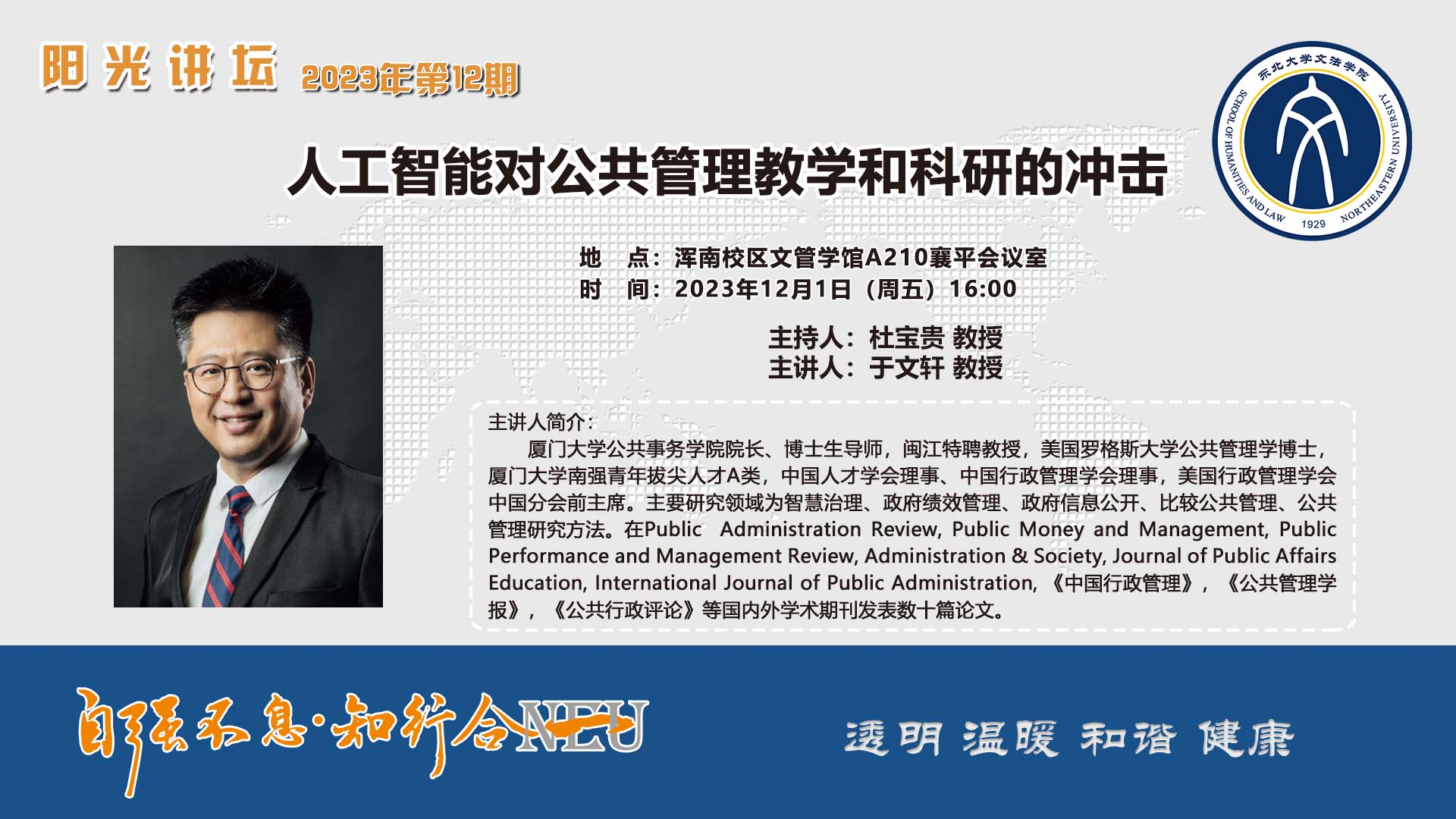地址:文管学院A210 襄平会议室